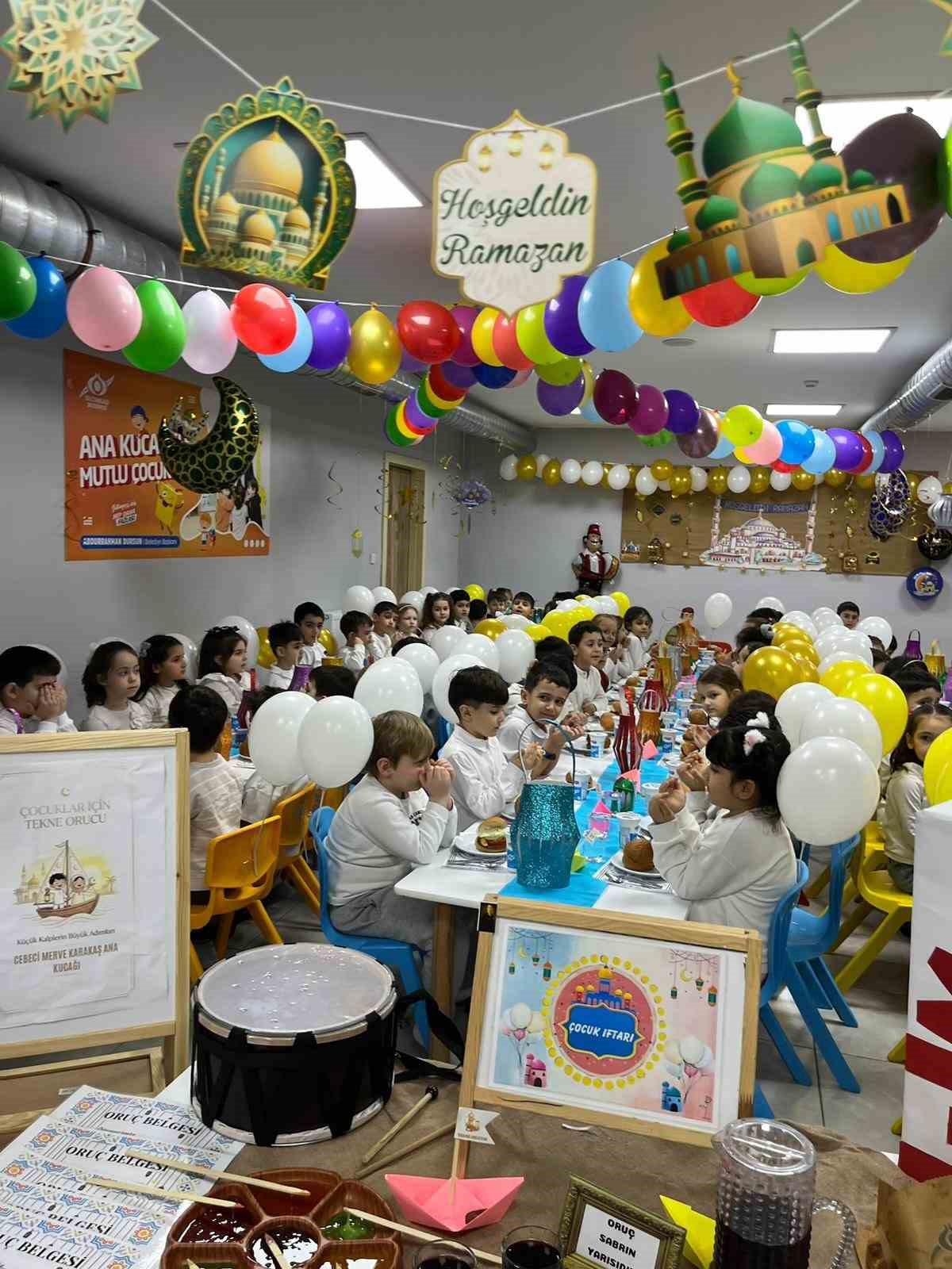 Çocuklar, için balonlarla bezenen özenli bir sofra hazırlandı. Çocuklar, ezanın okunmasını büyük bir sabırla bekledi. Öğle ezanıyla birlikte tekne oruçları dualar eşliğinde açıldı. Köfte patates ve tulumba tatlılarını afiyetle yiyen çocuklar arkadaşlarıyla beraber iftar yapmanın mutluluğunu yaşadı.