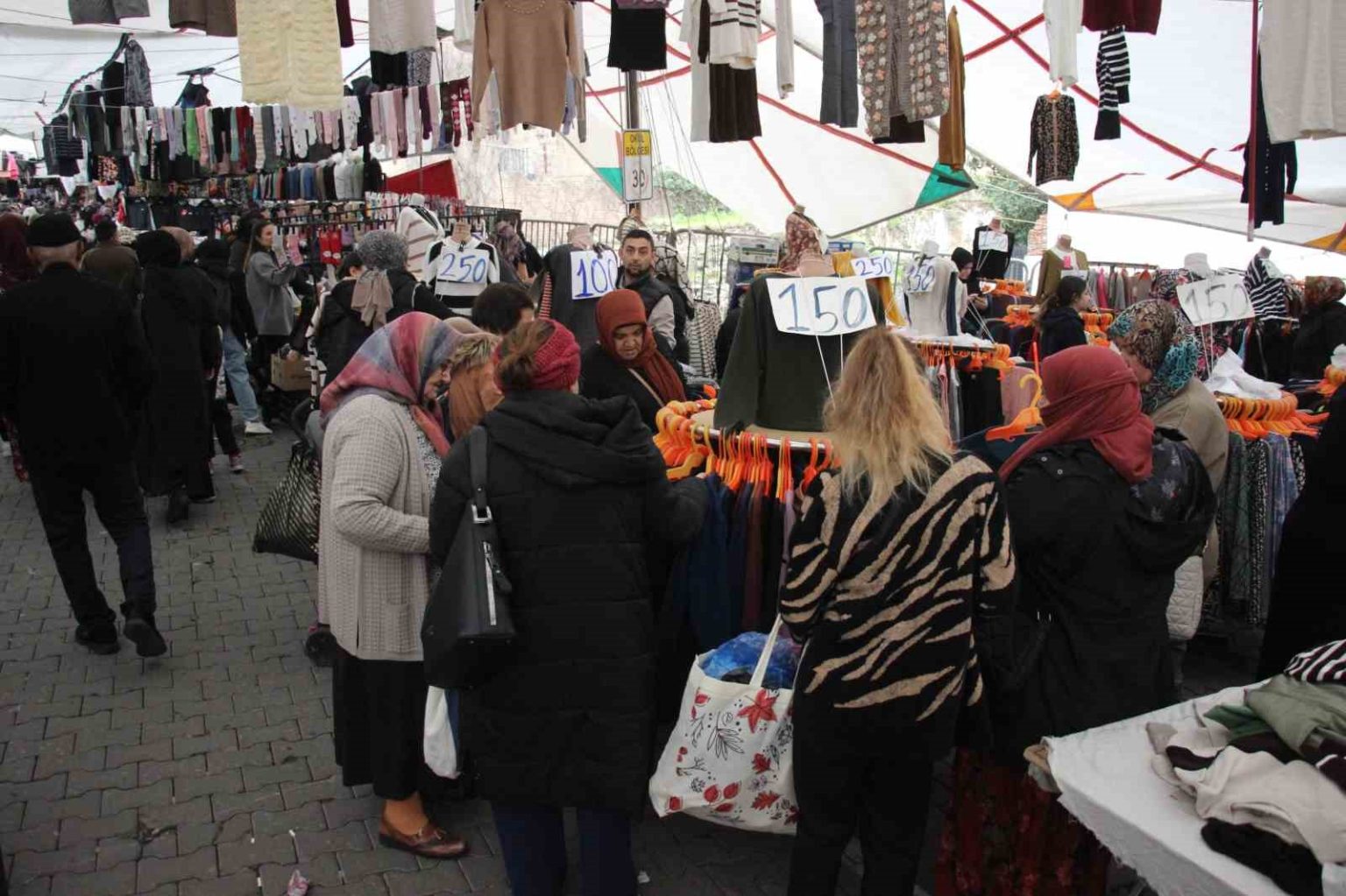 Her hafta erken saatlerden itibaren hareketliliğin yaşandığı Salı Pazarı’nın giyim bölümünde yaşanan yoğunluk esnafın yüzünü güldürürken, vatandaşlar ise hem uygun fiyat hem de ürün çeşitliliğinden memnun olduklarını dile getirdi.