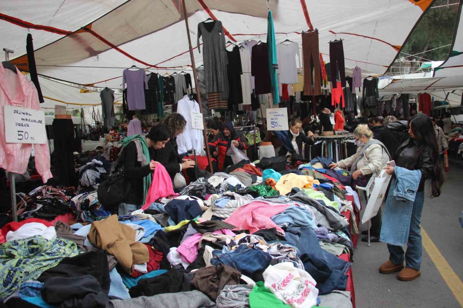 Tuncay Salman da pazara artık genç neslin daha fazla rağbet gösterdiğini belirterek, “Pazara vatandaşlar yoğun ilgi gösteriyorlar. Fiyatlar piyasanın çok çok altında ve gayet uygun. 50 liraya kazaklarımız, trikolarımız var. Kadınlara yönelik ürünlerimiz olsa da erkeklere göre ürünlerimiz de var. Mağazada bulamadığınız ürünlerin hepsini burada bulabilirsiniz. 150 kiloya uyacak bedenler dahi pazarda mevcut. Beden problemi yaşamazsınız. Pazarın en büyük özelliği bu hafta gördüğünüz ürünü haftaya görmüyorsunuz. Her hafta yeni bir ürün yeni bir model geliyor, her hafta sıfırlanıyor. Pazar kültürü apayrı bir şey. Vatandaşlar burada modayı takip edebilir. Dünya markalarının hepsi burada. Aklınıza gelebilecek tüm markaların ürünlerini burada bulabilirsiniz. Eskiden annelerimiz ablalarımız gelirdi şimdilerde üniversite öğrencileri de genellikle pazarı tercih ediyor. Gelenler ürünleri gördükten sonra haftaya bir daha geliyor. Böyle kısım kısım çevre büyüyor ve pazarın potansiyeli daha da artıyor. Z kuşağı pazara alışmaya başladı” diye konuştu.