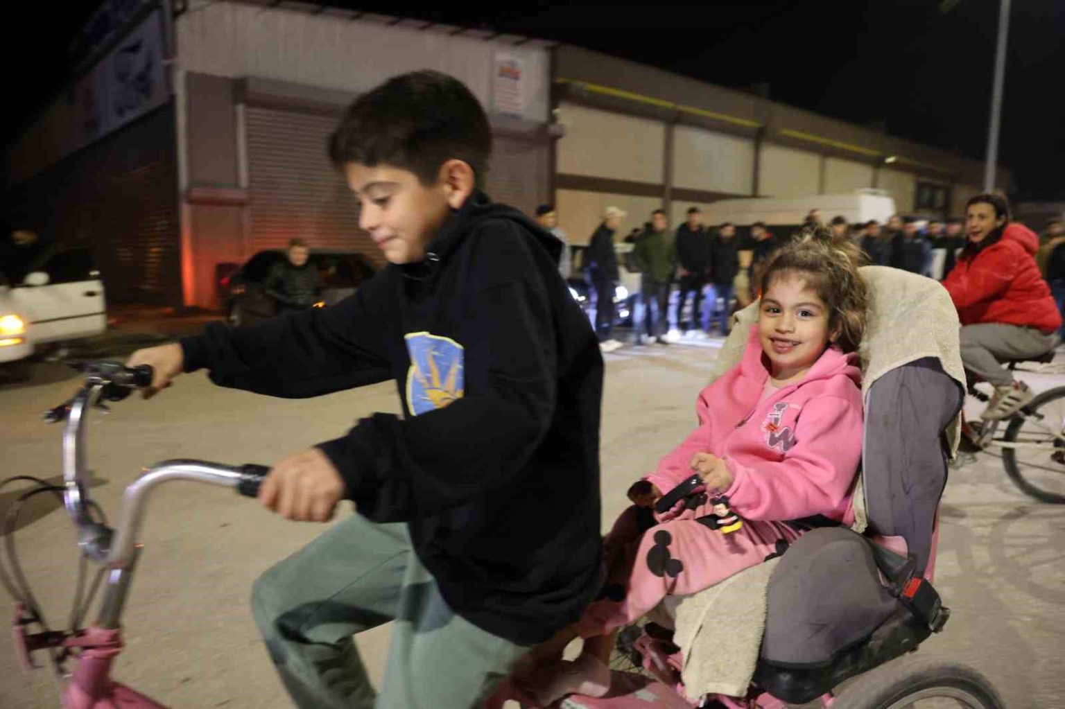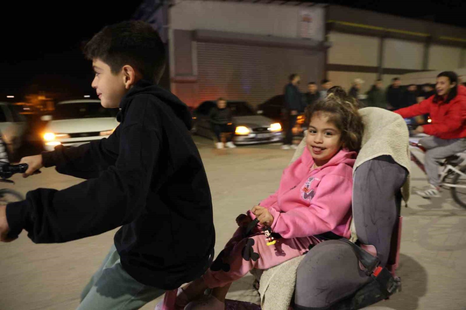Otomobil tutkunları, etkinliğe gelen minikler için şarkı açtı. Çocuklar alkışlarla uğurlanırken, ortaya yürekleri ısıtan görüntüler çıktı.