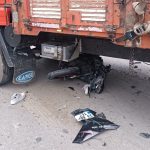 Motosiklet kamyonun altına girdi, savrulan sürücü ağır yaralandı