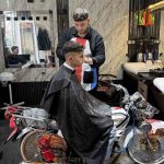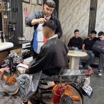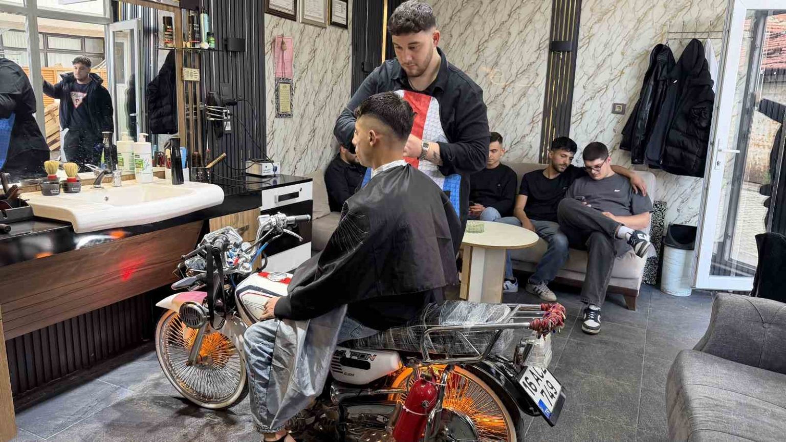 Motosikleti berber koltuğuna dönüştürdü, gençler sıraya girdi