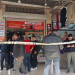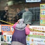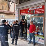 Olay yeri inceleme polisleri, iş yerinde çalışma yaptı. Bu sırada vatandaşların iş yerinin camından içeriyi merakla izlemesi dikkat çekti.