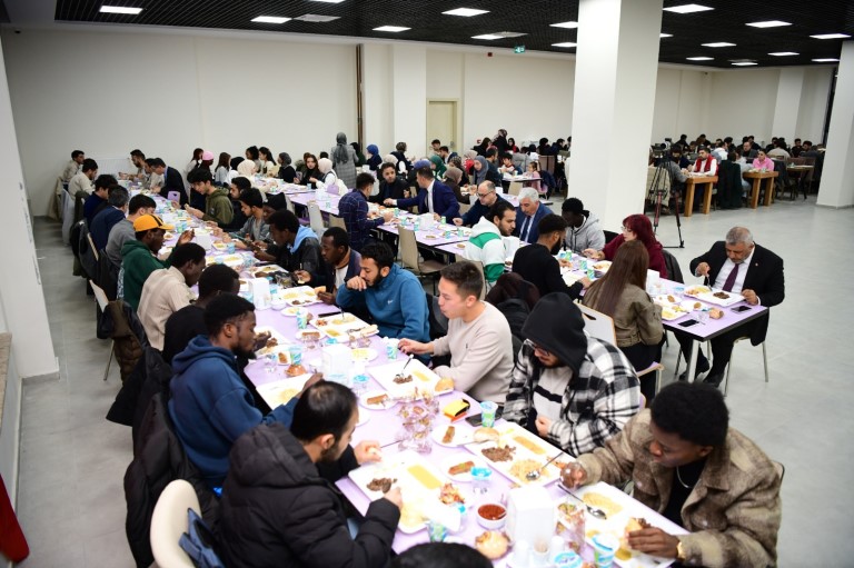 Yeşilyurt Yerleşkesi Öğrenci Yaşam Merkezi’nde düzenlenen iftar programında uluslararası öğrenciler bir araya geldi. Rektör Prof. Dr. Recep Bentli’nin katılımıyla gerçekleştirilen programda, farklı ülkelerden gelen öğrenciler Ramazan ayının manevi atmosferinde aynı sofrada buluştu. Yeni yemekhane binasında düzenlenen iftar programı, birlik ve beraberlik duygularını pekiştirirken öğrencilerle doğrudan iletişim kurulmasına da imkan sağladı.