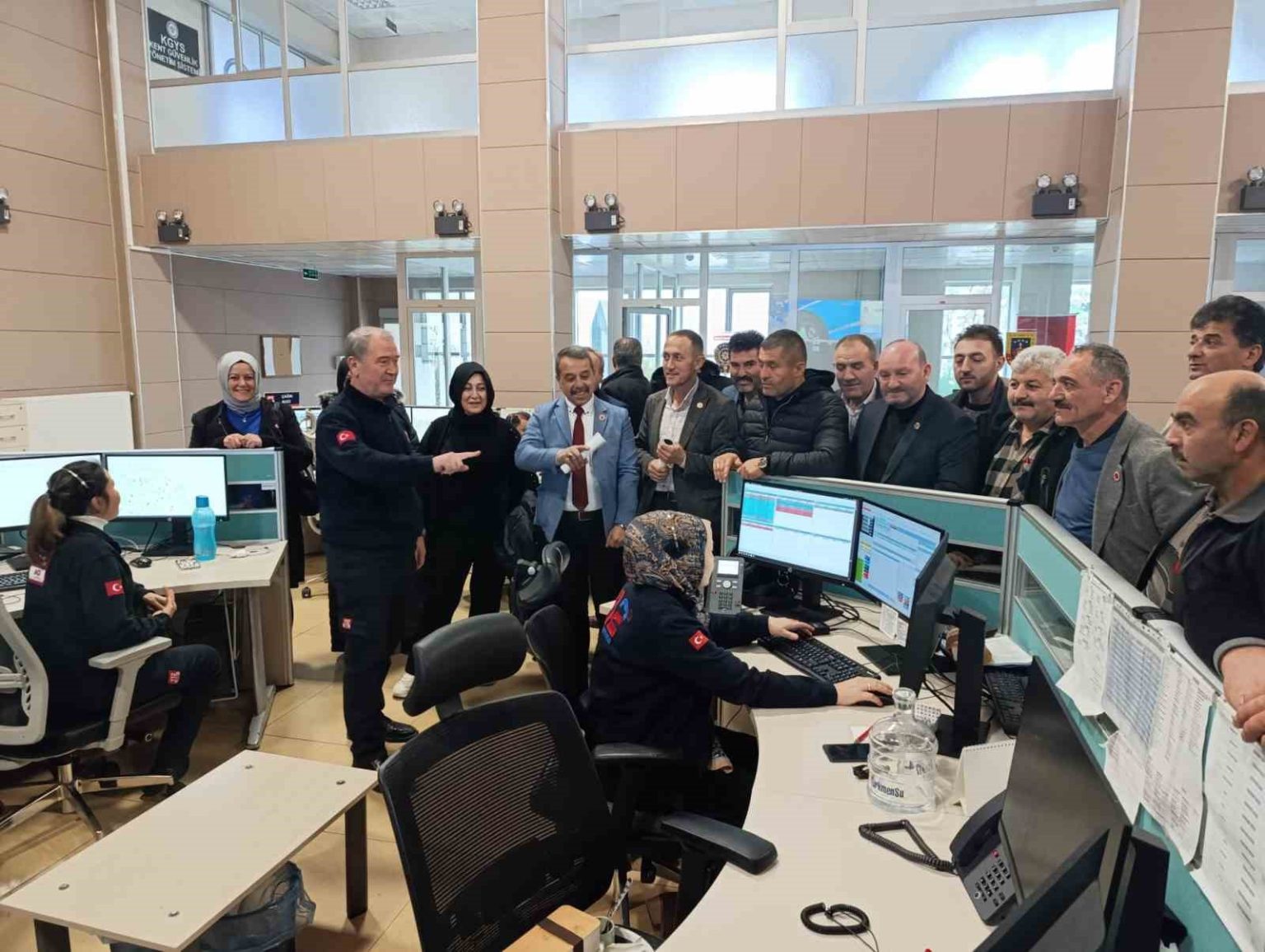Kütahya Muhtar Derneği Başkanı İsmail Arı ve mahalle muhtarları, 112 Acil Çağrı Merkezi’ni ziyaret ederek, merkezde yürütülen çalışmalar hakkında bilgi aldı.