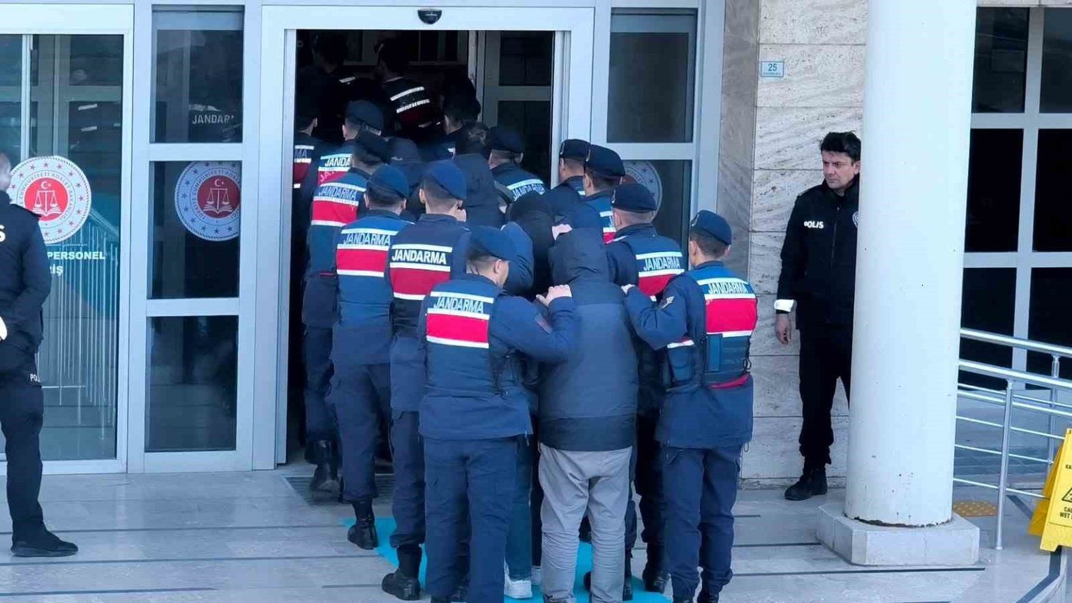 Gözaltı işlemlerinin ardından şüpheliler, sabah saatlerinde yoğun güvenlik önlemleri altında Muğla Adliyesi’ne sevk edildi. Adliye çevresinde geniş güvenlik önlemleri alınırken, şüpheliler önlem amacıyla jandarma araçlarıyla ayrı ayrı adliyeye getirildi.