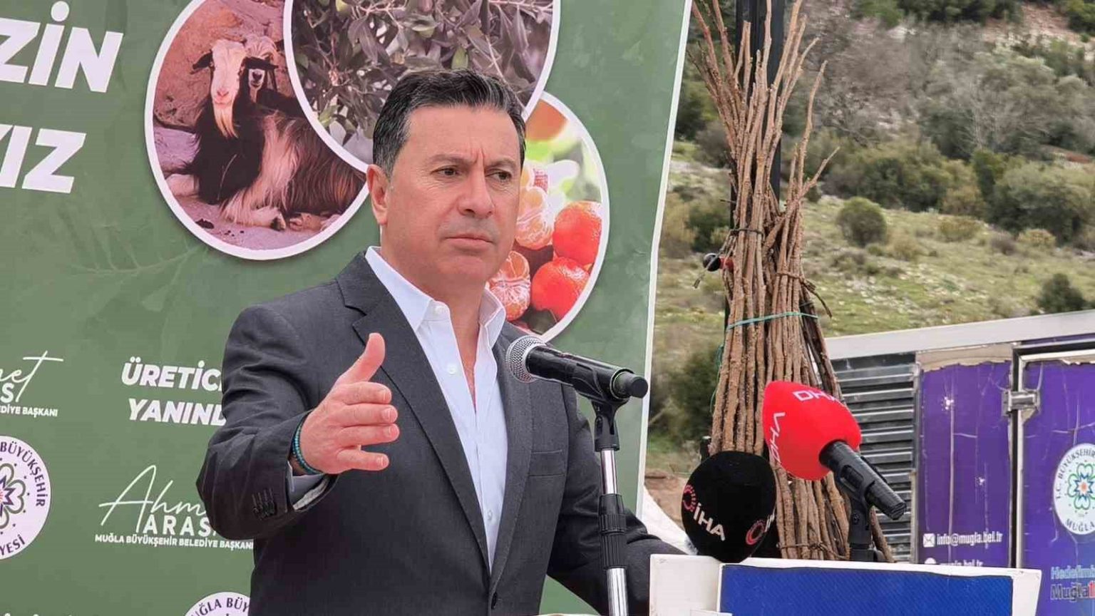 Muğla Büyükşehir Belediye Başkanı Ahmet Aras ise belediyelerin asli görevinin üreticiyi her alanda desteklemek olduğunu vurguladı. Kendi ailesinden ve dedesinin Bodrum’daki tarımsal emeklerinden örnekler veren Aras, şunları söyledi: “Bugün yaklaşık 150 bine yakın fidanı üreticimizle ve toprakla buluşturuyoruz. Belki bu fidanların meyve verdiğini birçoğumuz göremeyeceğiz ama bu işler hep gelecek için. Atalarımız zor şartlarda, sırtlarında su taşıyarak bu toprakları bize miras bıraktıysa, biz de yeni fidanlar dikerek bu mirası geliştirmek zorundayız”
