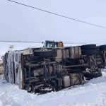 Van’ın Muradiye ilçesinde gizli buzlanmadan dolayı kontrolden çıkan tır devrildi.