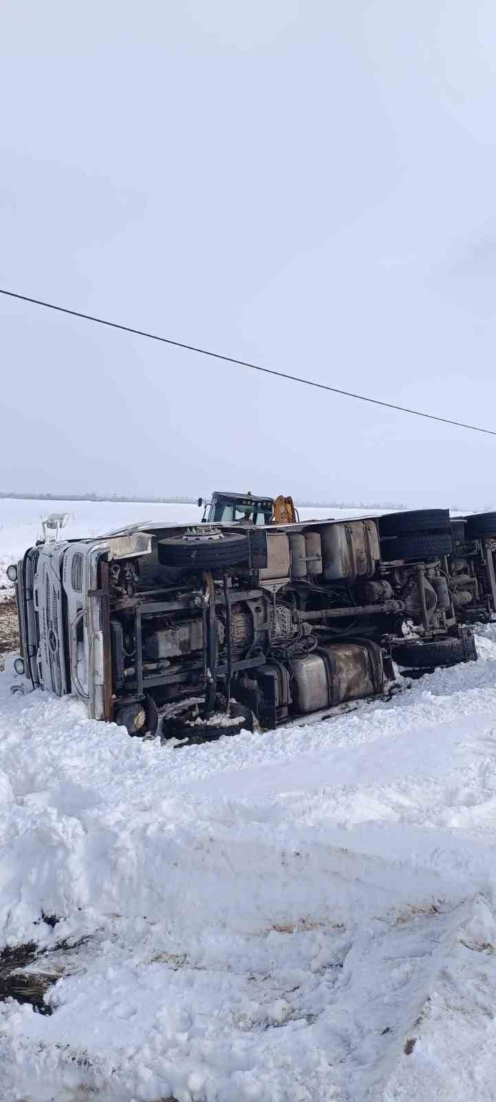 Van’ın Muradiye ilçesinde gizli buzlanmadan dolayı kontrolden çıkan tır devrildi.