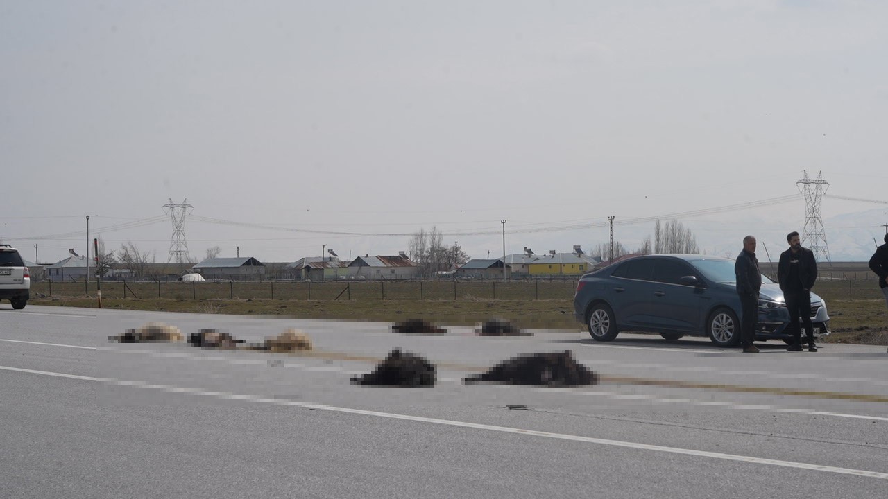 Muş-Bingöl karayolunda SUV tipi aracın keçi sürüsüne çarptığı kazada 10 hayvan telef oldu.