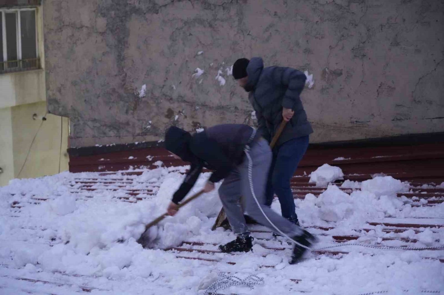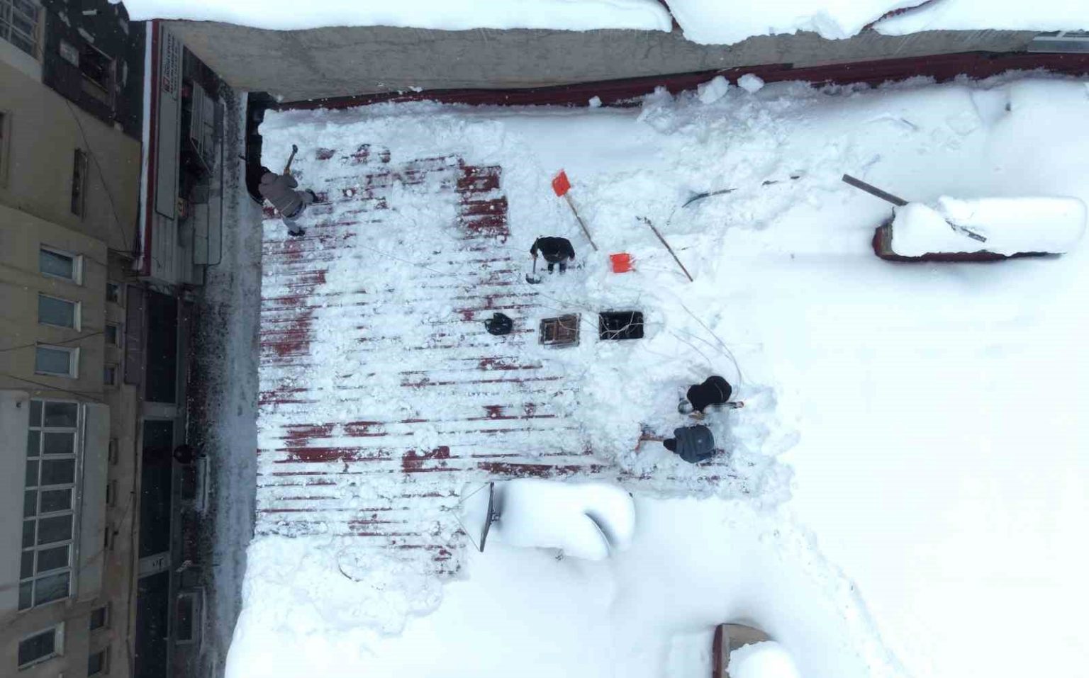 Kent genelinde etkili olan yoğun kar yağışı sonrası, binaların çatılarını kaplayan kar birikintileri risk oluşturmaya başladı. Bu risklere karşı halk arasında “çatı temizleyicileri” olarak bilinen işçiler, soğuk hava ve zorlu şartlara rağmen çalışmalarını aralıksız sürdürüyor.