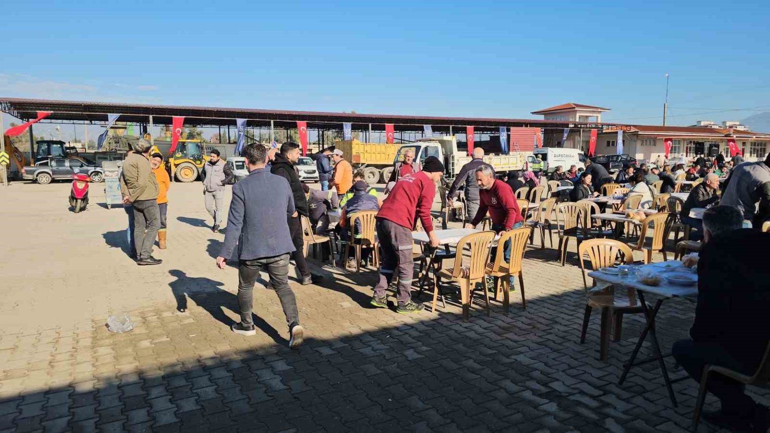 Hayra, Başkan Ertuğrul Tetik’in yanı sıra Belediye Başkan Yardımcıları Kadir Mutlu ve Selahattin Yılmaz, Belediye Meclis Başkan Vekili Serkan Sevim, belediye meclis üyeleri, mahalle muhtarları ve çok sayıda vatandaş katıldı. Yaklaşık 5 bin kişinin bir araya geldiği etkinlikte, iş kazalarının yaşanmaması için dualar edildi. Keşkek, turşu ve helvadan oluşan yaklaşık 4 bin kişilik hayır yemeği çalışanların servisi ile konuklara ikram edildi.