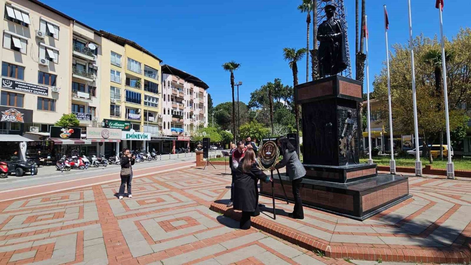 Aydın’ın Nazilli ilçesinde 5 Nisan Avukatlar Günü kapsamında Atatürk Anıtı önünde çelenk koyma töreni düzenlendi.