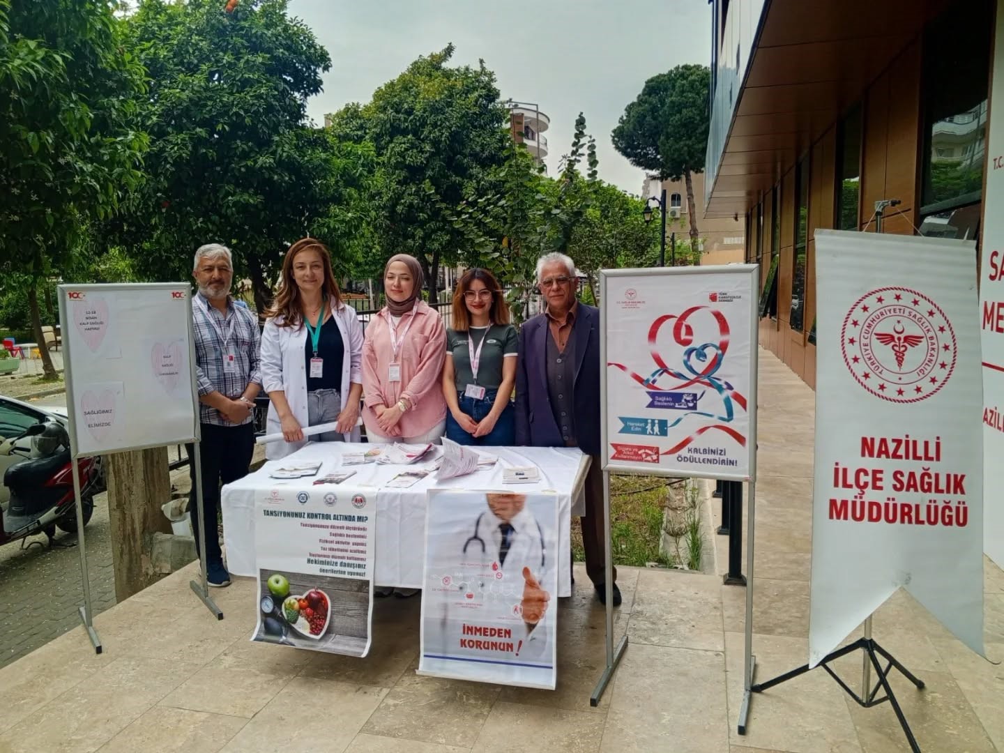 Aydın’ın Nazilli ilçesinde, Kalp Sağlığı Haftası etkinlikleri kapsamında İlçe Sağlık Müdürlüğü tarafından vatandaşlara yönelik bilgilendirme standı kuruldu.