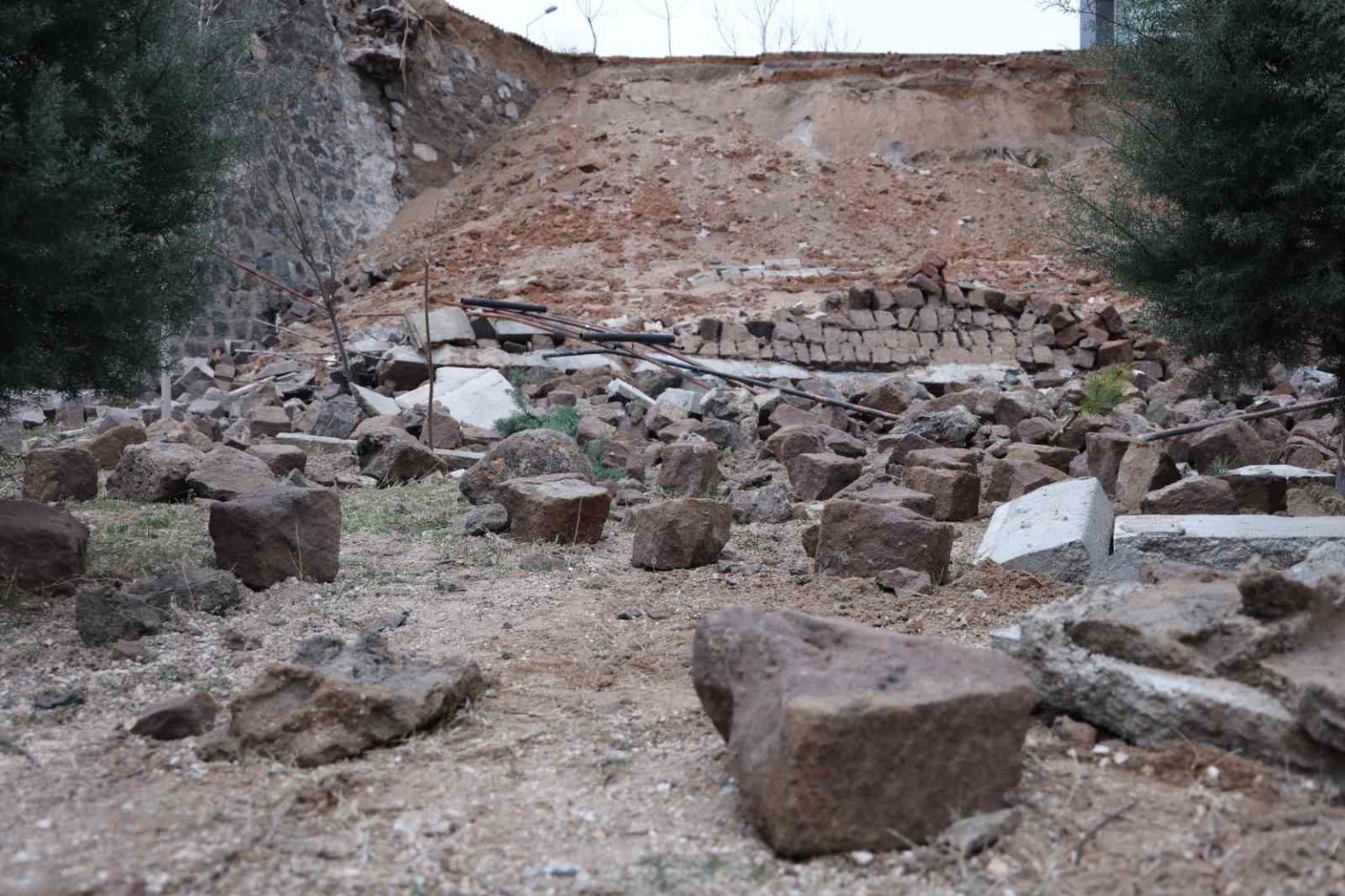 Nevşehir’de yaklaşık 15 metre yüksekliğindeki istinat duvarı çöktü.