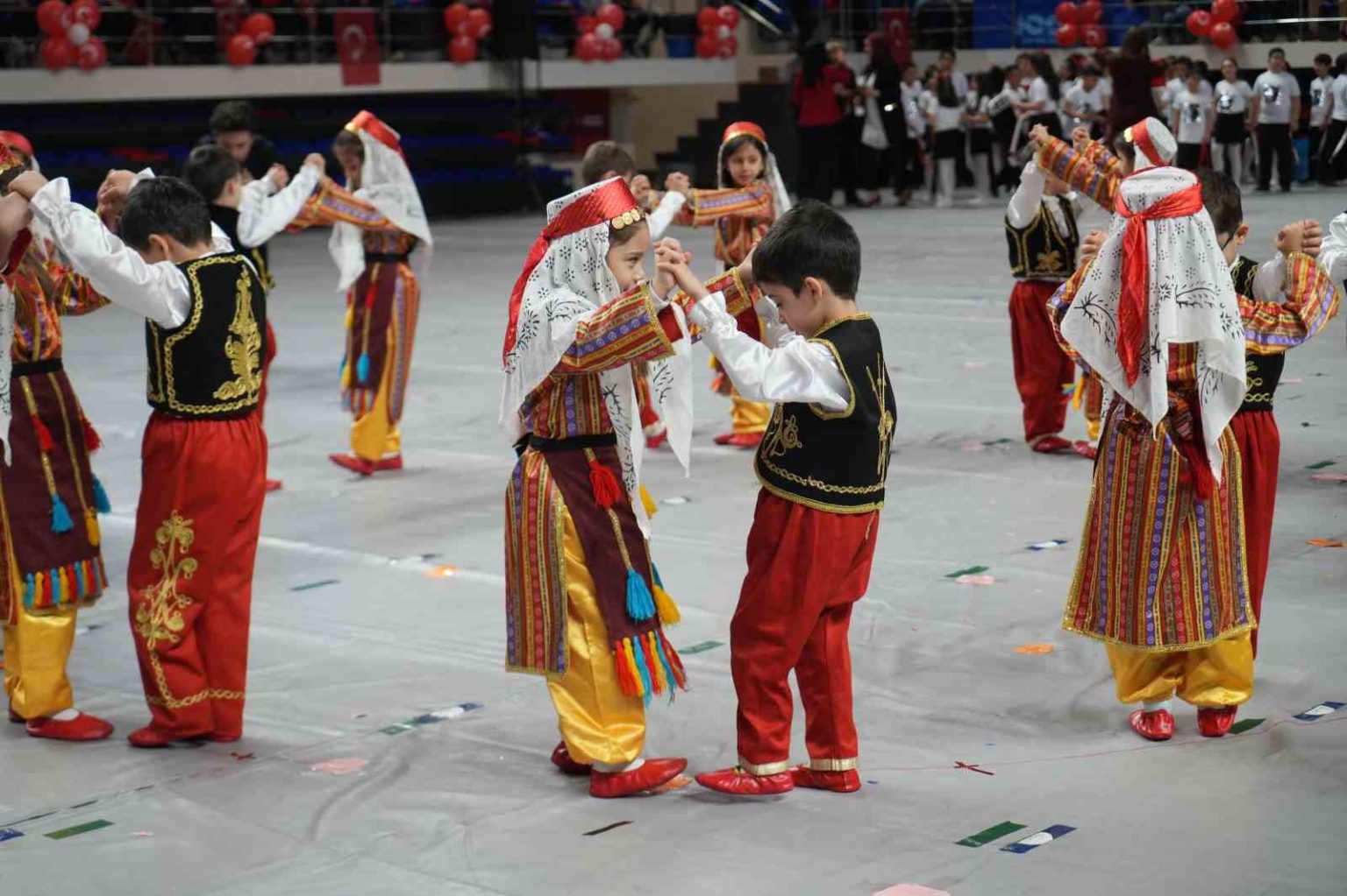 Konuşmaların ardından öğrenciler tarafından hazırlanan şiirler okundu, halk oyunları ve çeşitli sahne gösterileri sergilendi. Renkli görüntülere sahne olan etkinliklerde çocukların performansları izleyenlerden büyük beğeni topladı.