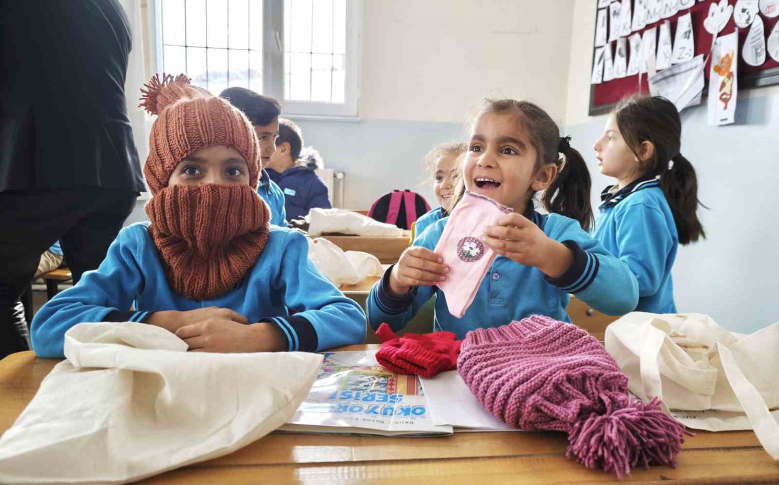 Niğdeli kadınların bir araya gelerek ördükleri atkı, bere ve eldivenler Bitlis’in Ahlat ilçesindeki köy çocuklarına ulaştırdı.