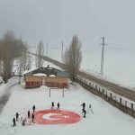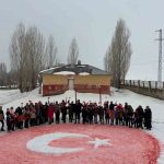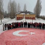 Ağrı’nın Taşlıçay ilçesinde Düzgören İlkokulu ve Ortaokulu öğrencileri kar üzerine Türk bayrağı yaptı.