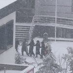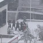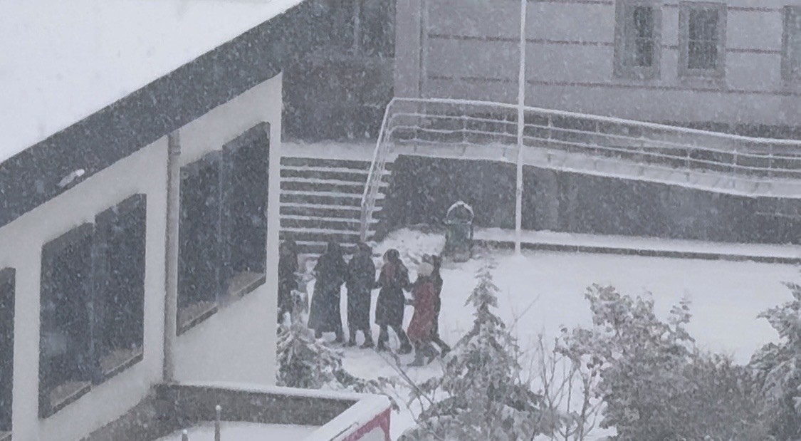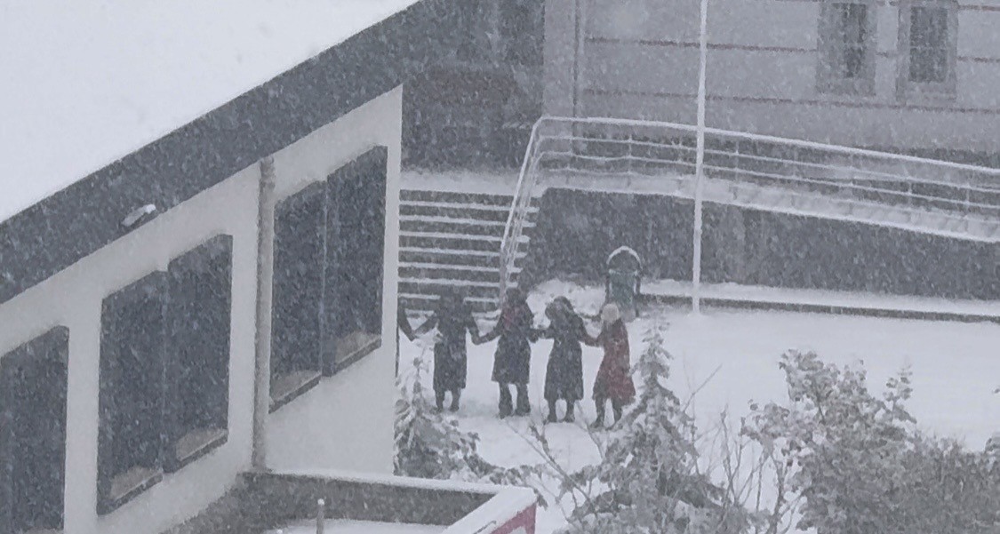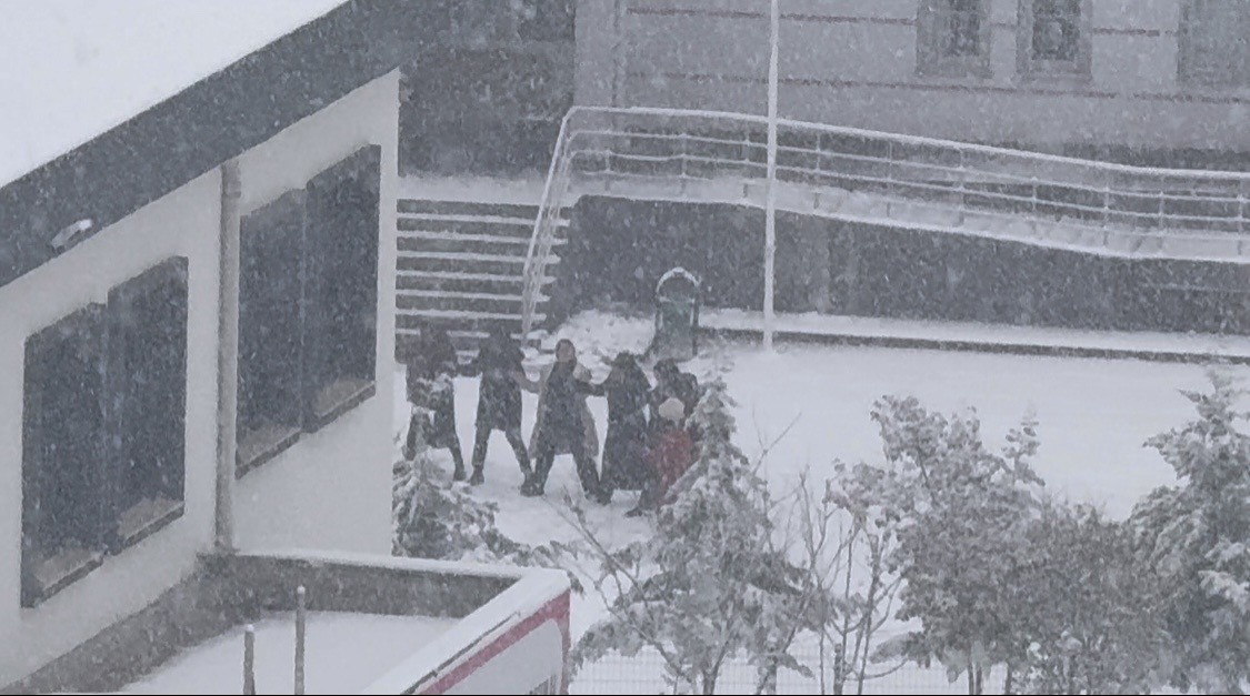 Öğrenciler karın keyfini okul hoparlöründen çalınan oyun havasıyla çıkardı