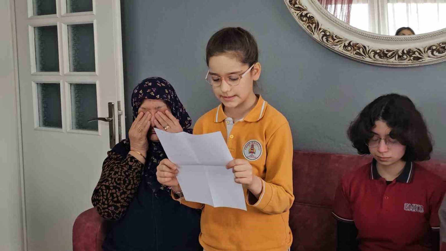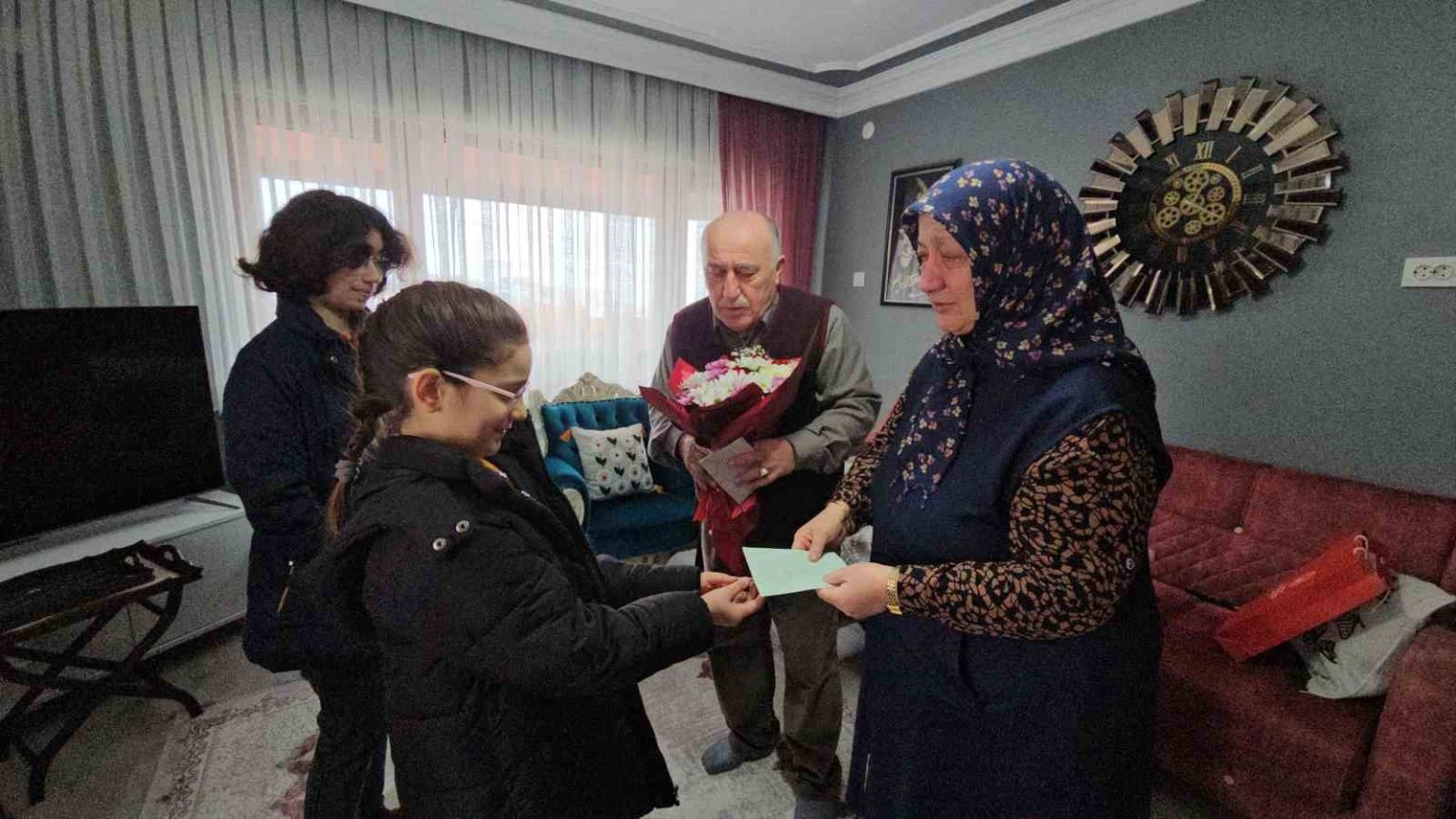 Öğrencilerin yazdığı 380 mektuptan bazıları, şehit ailelerinin evleri ziyaret edilerek bizzat verildi.