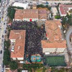 İstanbul’un Çekmeköy ilçesinde bulunan Çekmeköy Borsa İstanbul Mesleki ve Teknik Anadolu Lisesi’nde bıçaklı saldırı sonucu hayatını kaybeden öğretmen Fatma Nur Çelik için düzenlenen anma töreni havadan görüntülendi.