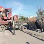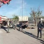 Okul bahçesinde çökme sonucu çukura düşen kamyon vinçle çıkarıldı