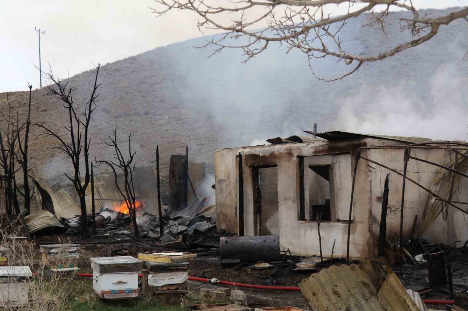 Oltu’da korkutan yangın: Arı kovanları yandı