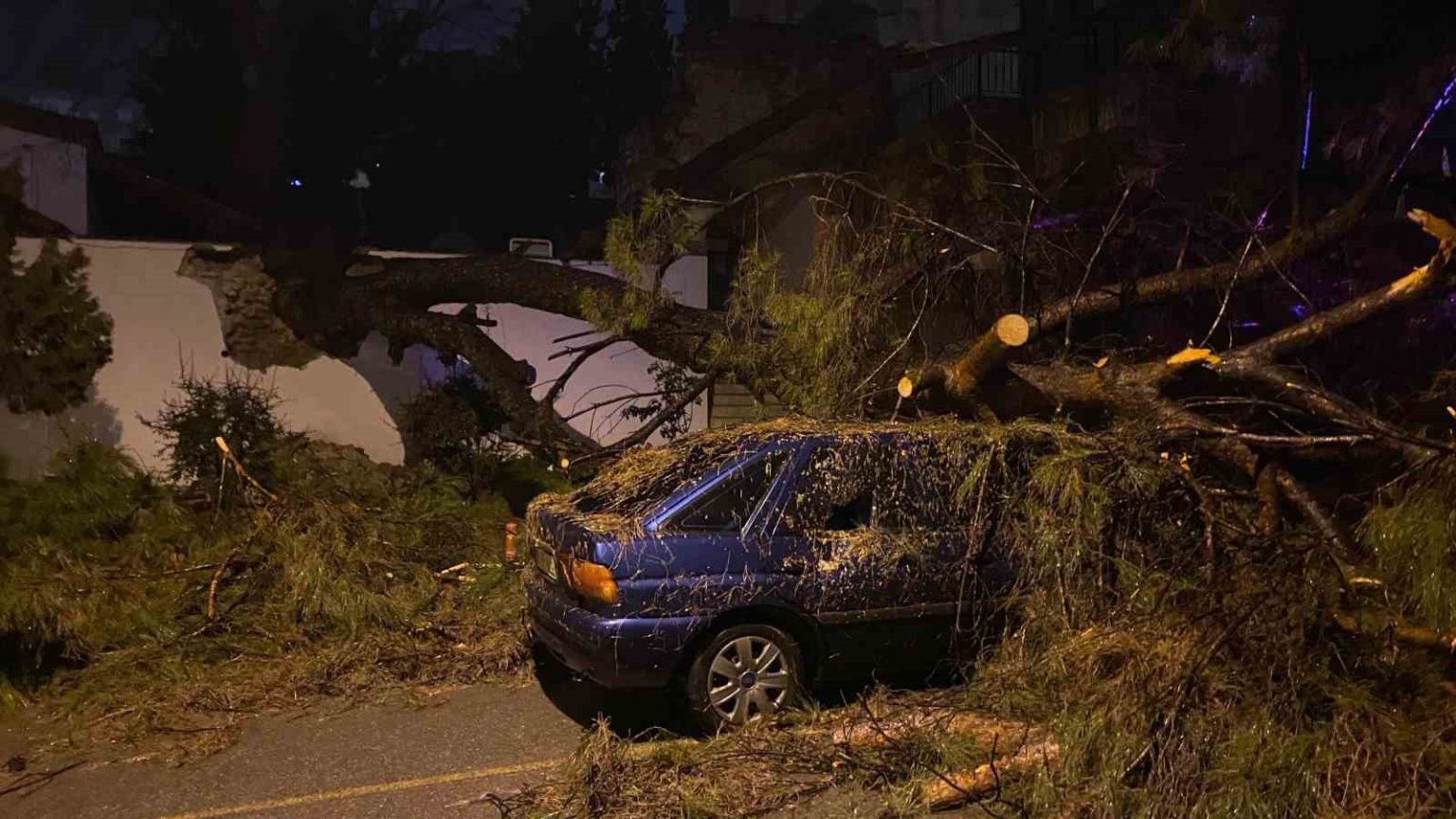 Aydın’ın Efeler ilçesinde şiddetli yağmur ve rüzgarın etkisi ile bir ağaç cami bahçesinin duvarını yıkarak seyir halindeki bir otomobilin üzerine devrildi. Araçta bulunan 2 kişi yaralandı.