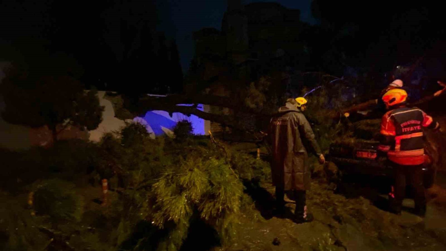 Olay, Köprülü-Veysipaşa Mahallesi Çankaya Caddesi üzerinde saat 22.30 sıralarında meydana geldi. Edinilen bilgiye göre, cadde üzerindeki Cihanoğlu Camii’nin bahçesinde bulunan ağaçlardan biri şiddetli yağmur ve rüzgarın etkisi ile önce cami duvarını yıktı daha sonra da seyir halindeki 09 EP 809 plakalı otomobilinin üzerine büyük bir gürültü ile devrildi. Olayda otomobilde bulunan 2 kişi sıkışarak yaralandı. 112 Acil Çağrı Merkezi’ne yapılan ihbar üzerine bölgeye sağlık, polis ve itfaiye ekipleri sevk edildi. Kısa sürede olay yerine gelen Aydın Büyükşehir Belediyesi İtfaiye Daire Başkanlığı ekipleri ağacın altında kalan araç içerisindeki 2 kişiyi bulundukları yerden çıkartarak sağlık ekiplerine teslim etti. Sağlık ekipleri tarafından da ilk müdahaleleri yapılan yaralılar ambulanslarla hastaneye kaldırdı. Hastanede tedavi altına alınan yaralıların sağlık durumlarının iyi olduğu öğrenildi.