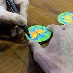Yaklaşık 25 yıldır çizer olduğunu ifade eden Furkan Tangüner, “Daha önceden gazetede çalıştım. Karikatür çizdiğimiz dönemlerde sayfa tasarlıyorduk, düzenini yapıyorduk. Mizahi yazılar, karikatürler, çizgi romanlar Sonra aklıma fikir geldi, biraz da tesadüfi oldu. Çizgiyi farklı bir şekle soktum. Genelde ahşap olmak üzere şimşir ağacı, taş ve seramik gibi değişik malzemelerin üzerine çini mürekkebi ile resim, desen çiziyorum. Bunların üretimini yapıyorum. Benim açımdan üretim aşaması çok keyifli. Oturuyorum, aklıma geldiği şekilde çiziyorum. İnce ince hepsini işliyorum, detay giriyorum” dedi.