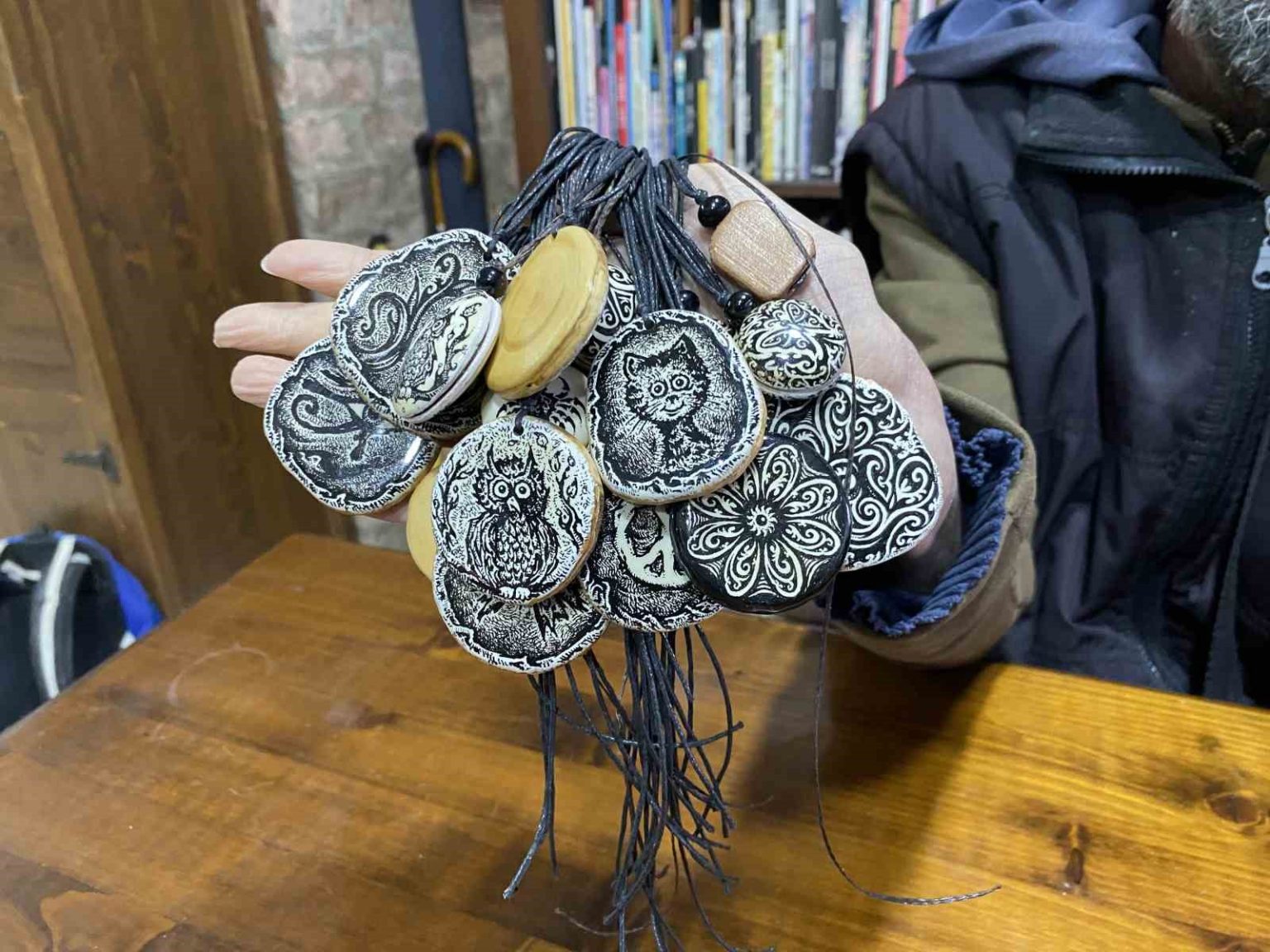 Eskişehir’de eskiden karikatürcü olan ve hala severek çizim yapmaya devam eden 60 yaşındaki Furkan Tangüner, çini mürekkebi ile üzerine ilginç resimler ve desenler yaptığı süs ürünleri ile kendisine ek gelir kaynağı oluşturdu.