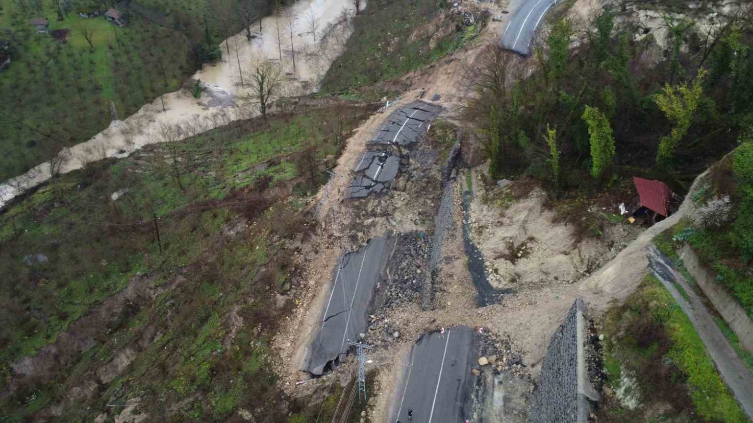 Ordu’yu İç Anadolu’ya bağlayan Akkuş-Niksar karayolunda meydana gelen heyelan sonrası yolun bir kısmı uçtu, bölgedeki bir ev de güvenlik gerekçesiyle tahliye edildi. Heyelan, havadan görüntülendi.