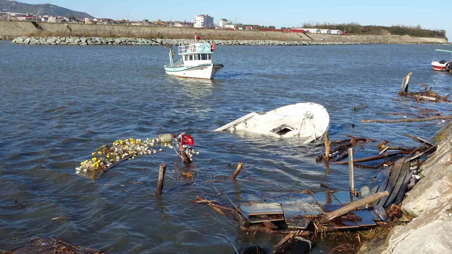 Altınordu ilçesi Cumhuriyet Mahallesi’nde bulunan Melet Irmağı’ndaki balıkçı barınağı da sabaha karşı etkili olan fırtınadan etkilendi. Dev dalgalar nedeniyle 8 metrelik balıkçı kayığı parçalanarak suya battı. Balıkçıların kullandıkları iskeleler ise zarar gördü.