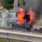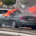 Ordu’nun Fatsa ilçesinde seyir halindeyken alev alan lüks otomobil, kullanılamaz hale geldi.