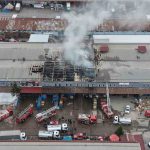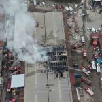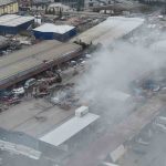 Yanan depo havadan görüntülendi