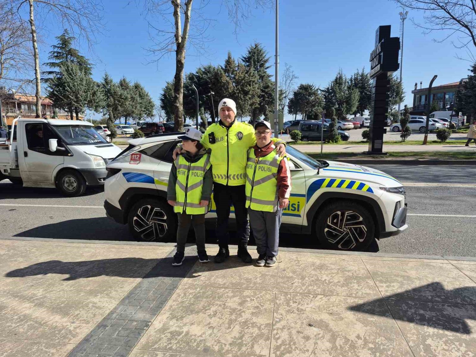 Ordu’nun Ünye ilçesinde özel öğrenciler, temsili olarak trafik polisi olup, denetime katıldı.
