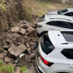 Ordu’da tarihi evin istinat duvarı araçların üzerine devrildi