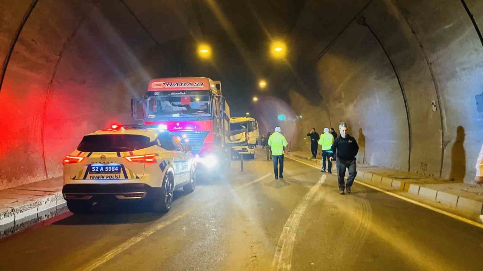 Kaza, Yunus Emre Mahallesi’nde bulunan Yunus Emre Tüneli içerisinde meydana geldi. Edinilen bilgiye göre, Samsun istikametine seyreden Şener Odabaşı yönetimindeki 52 AFB 897 plakalı hafriyat kamyonu, iddiaya göre frenlerin tutmaması sonucu kontrolden çıkarak, aynı istikamette ilerleyen Ahmet Hamdi Odabaşı idaresindeki 52 K 5899 plakalı bir başka hafriyat kamyonuna arkadan çarptı. Çarpışmanın şiddetiyle kamyon kabininde sıkışma tehlikesi atlatan sürücü Şener Odabaşı, çevredeki vatandaşların yardımıyla araçtan çıkarıldı. İhbar üzerine olay yerine sağlık, polis ve itfaiye ekipleri sevk edildi. Tünelin diğer tüpünün bakım çalışması nedeniyle kapalı olması, trafik kazasının yaşanması ve trafiğin tek tüpten çift yönlü sağlanması, ulaşımı adeta durma noktasına getirdi. Kaza sonrası tünel girişinde kilometrelerce araç kuyruğu oluştu. Fatsa Bölge Trafik Denetleme İstasyon Amirliği ekipleri, kaza bölgesinde güvenlik önlemleri alarak, trafiği yönlendirdi. Maddi hasar alan kamyon, kazaya karışan diğer kamyonun yardımıyla halatla çekilerek tünelden çıkarıldı. Yaklaşık 2 saat süren çalışmaların ardından tünel yeniden trafiğe açılırken, polis ekipleri kazayla ilgili inceleme başlattı.