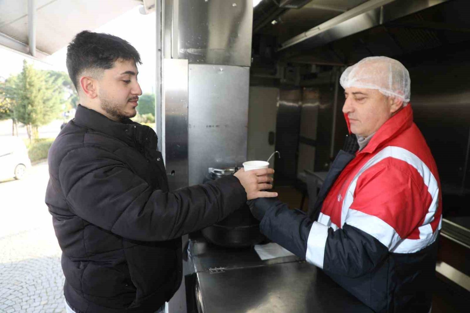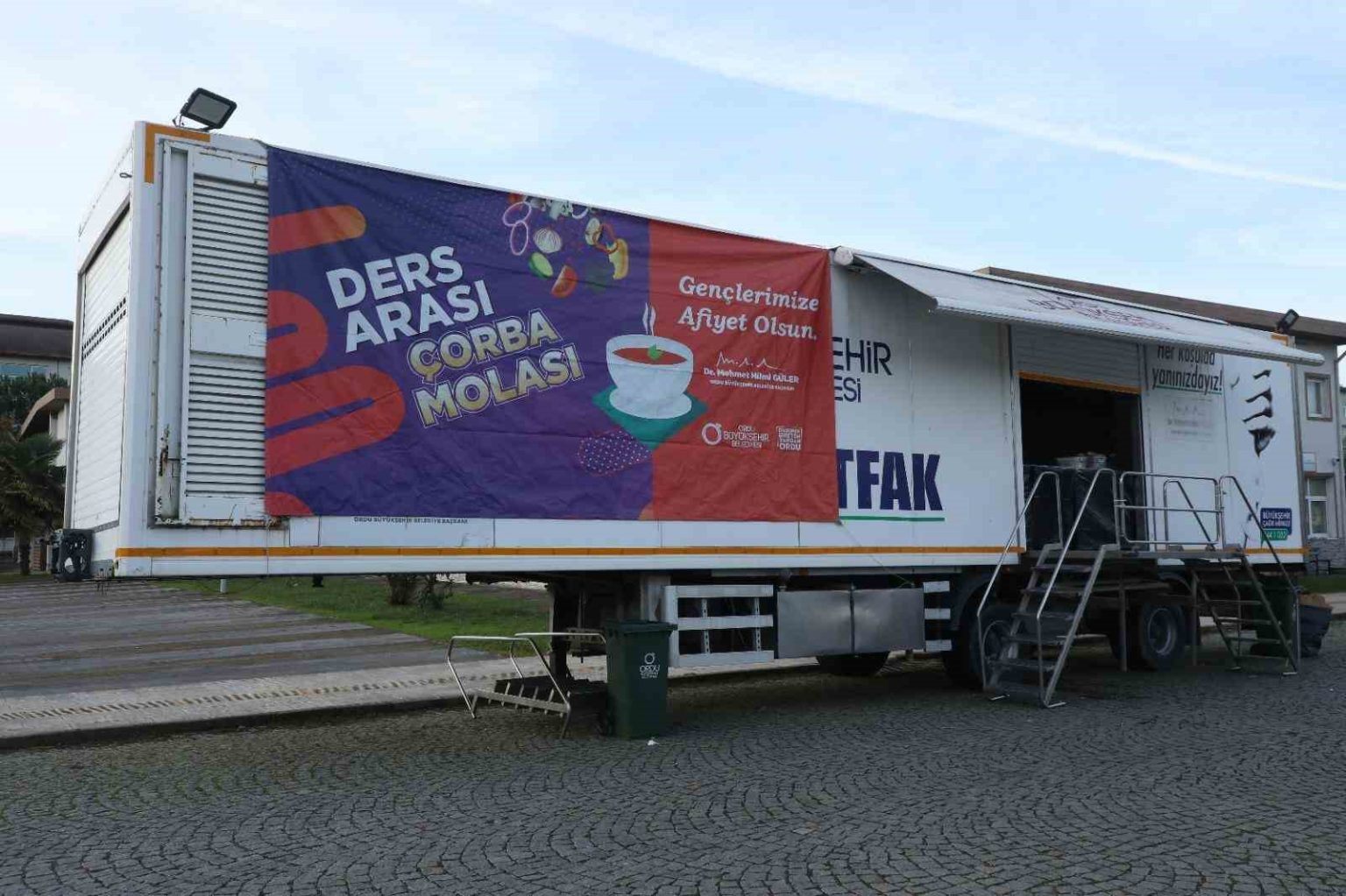 Büyükşehir Belediye Başkanı Dr. Mehmet Hilmi Güler’in hastaneler, kütüphaneler, ilçe merkezleri, pazar yerleri gibi alanlarda uygulamaya koyduğu çorba ikramı vatandaşlarla buluşturuluyor. Ordu Üniversitesi’nde bu hizmetten öğrencilerin yararlanmasını sağlamak amacıyla yıllardır sıcak çorba ikramı yapılırken üniversite girişine konuşlandırılan mobil mutfak tırında Buharalı Şakir Efendi Aşevi’nde pişirilen taze çorbalar, sabah saatlerinde derse giden veya ders arasında mola vermek isteyenlerin hem içini ısıtıyor, hem de karınlarını doyurmuş oluyor.