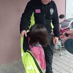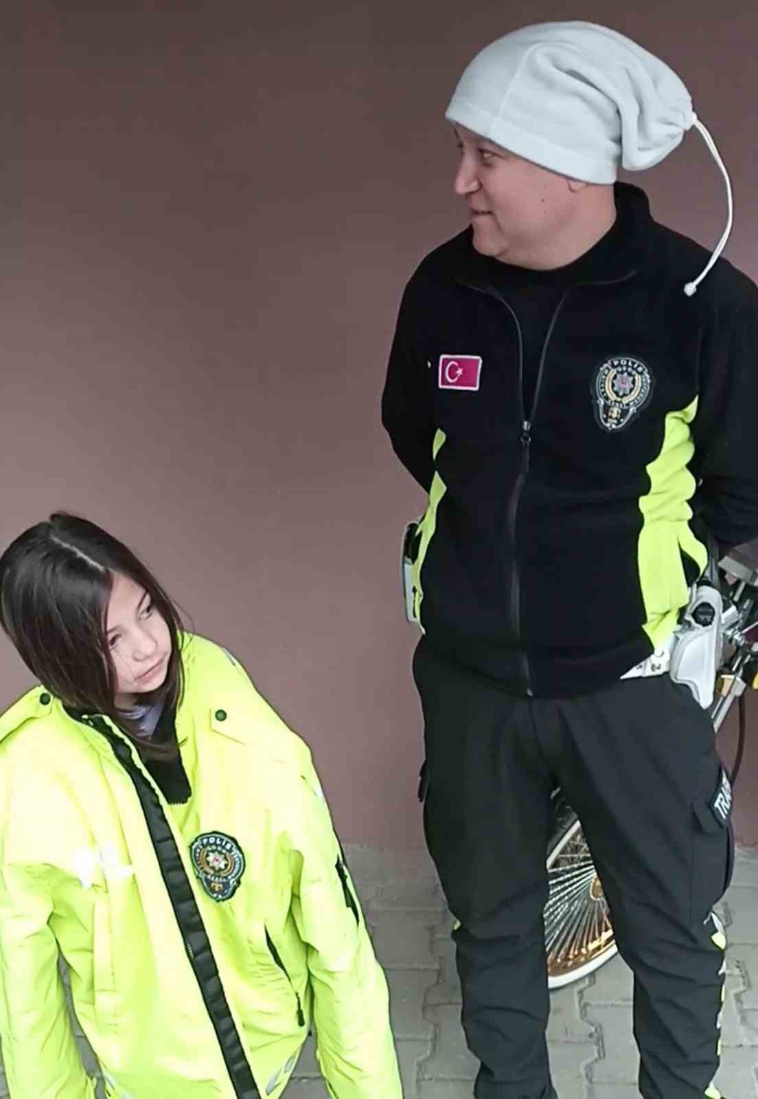 Ordu’nun Ünye ilçesinde görevli trafik polisleri, jimnastik kursuna giden 7 yaşındaki küçük kızın üşüdüğünü fark edince kendi montunu çıkarıp giydirdi. Polisin sergilediği örnek davranış, görenlerin içini ısıttı.