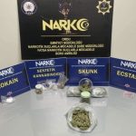 İl Emniyet Müdürlüğü Narkotik Suçlarla Mücadele Şube Müdürlüğü ekiplerince uyuşturucu madde kullanımı ve ticaretini önlemek adına yürütülen çalışmalar sürüyor. Ekiplerin son bir haftada yaptıkları çalışmalarda 297 adet sentetik ecza, 2 gram metamfetamin, 6 gram sentetik kannabinoid hammaddesi, 92 gram sentetik kannabinoid, 64 gram esrar, 126 gram skunk ve 11 gram kokain ele geçirildi.