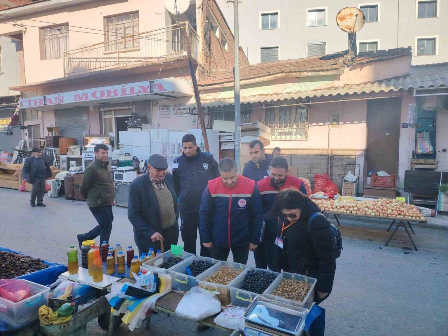 Germencik Belediyesi Zabıta Müdürlüğü ile İlçe Tarım ve Orman Müdürlüğü ekipleri, Ortaklar Semt Pazarı’nda halk sağlığını korumaya yönelik kapsamlı gıda denetimi gerçekleştirdi.