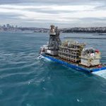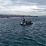 Osman Gazi yüzer üretim platformunun parçaları ile Yıldırım Sondaj Gemisi’nin kulesini taşıyan dev platform gemisi İstanbul Boğazı’ndan geçiyor.
