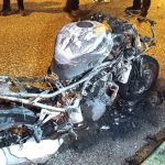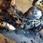 Yangın sonrası herhangi bir yaralanma yaşanmazken, alevlerin tamamen sardığı motosiklet hurdaya döndü.