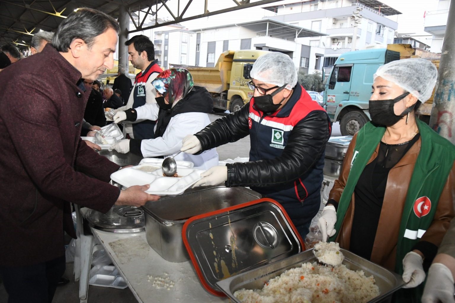 “Ramazan ayını da bizler çok güzel kenetlenerek geçiriyoruz” diyen Başkan Çenet, “Saygıdeğer Osmaniyeli hemşehrilerim. Göreve geldiğimiz günden beri girmediğimiz sokağı, caddesi, yürümediğimiz yolu çok şükür kalmadı. Şu Salı Pazarı’nın tamda bulunduğumuz alandan şehrimizi Çevre Yolu’ndan Musa Şahin Bulvarı’na bağlayınca kadar Korkut Ata Mahallemizden, Mevlana Mahallemizden, Kazım Karabekir Mahallemizden bütün mahallelerimize açmadığımız koridor kalmadı. Yepyeni caddeler, yepyeni binalarımız göğe yükseliyor. Bunlar da şehrimize güzellik katıyor. Bugün Ramazan orucumuzun 18’incisini açmak üzere toplandık. Allah tuttuğumuz oruçları kabul etsin. Gerçekten çokta bereketli bir Ramazan ayı birlikte idrak ediyoruz. Yavaş yavaş Ramazan ayının da sonuna doğru geliyoruz. 11 ayın sultanı Ramazan ayını bizler çok güzel kenetlenerek geçiriyoruz. Binlerce hanemize sıcak yemek ulaştırıyoruz. Allah nasip ederse önümüzdeki pazartesi değil bir sonraki pazartesi günü de Halep’te iftar çadırımızı kuracağız. Osmaniye’mizin bu gönül zenginliğini Suriyeli kardeşlerimize de götüreceğiz. Osmaniye’miz dayanışma, paylaşma, kardeşlik ayı Ramazan ayına uygun hep birlikte hareket ediyor. Bizler de sizlerle burada Ramazan orucunu açmanın bahtiyarlığını yaşıyoruz” diye konuştu.