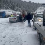Öte yandan, yoğun kar yağışı altında bölgede görev yapan AFAD ekipleri, yolda mahsur kalan ve beklemek zorunda kalan sürücülere yiyecek ve battaniye dağıtarak destek sağladı. Ekipler, kar yağışının etkisini sürdürdüğü bölgede güvenlik önlemlerini artırırken, trafik kontrollü olarak sağlandı.