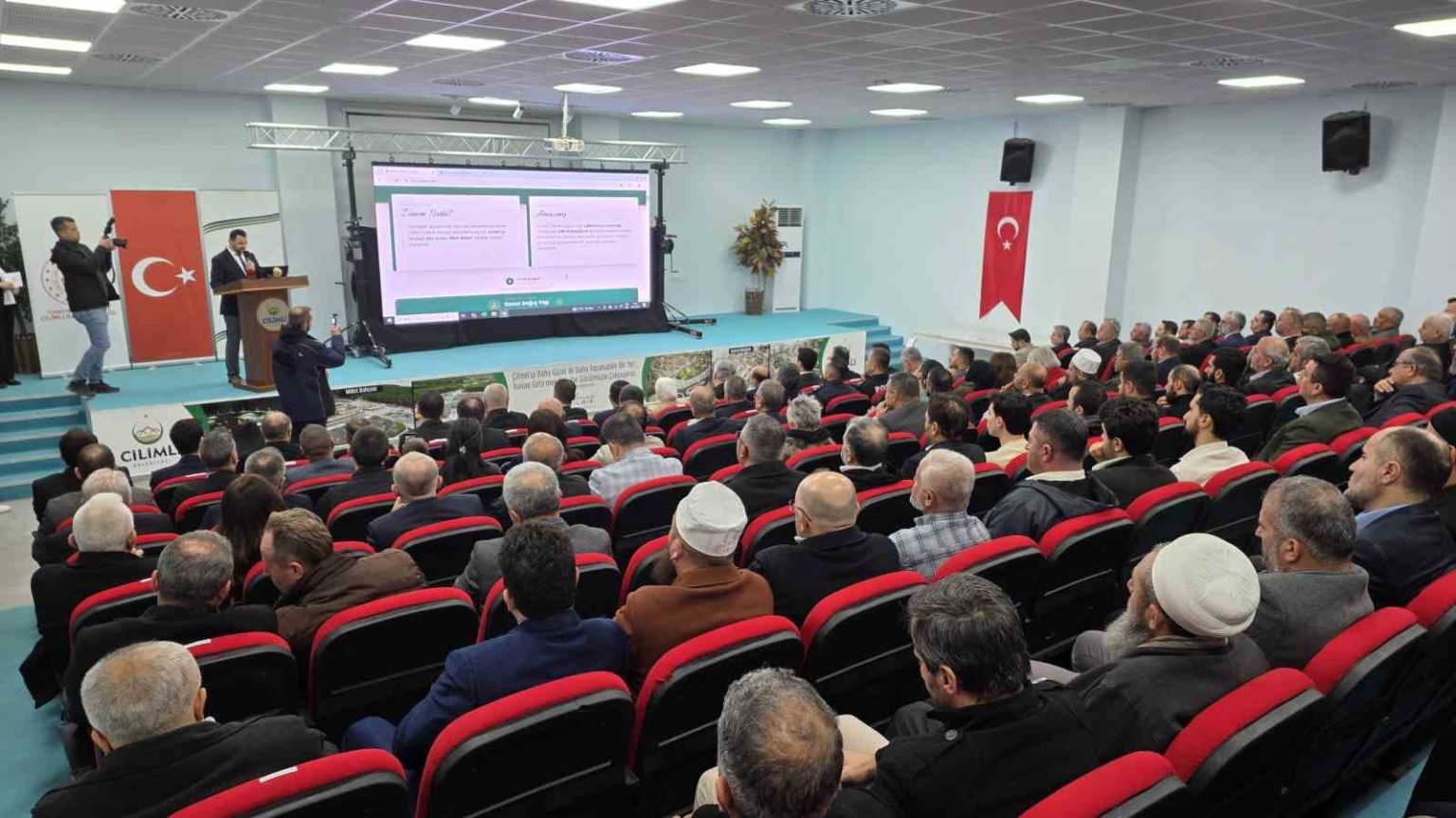 Zimem Defteri Projesi tanıtımı Çilimli Belediyesi konferans salonunda geniş katılımla yapıldı. Programda konuşan AK Parti Düzce Milletvekili Ayşe Kesir, “Ramazan’ın ruhuna uygun, bize medeniyetimizin ve inancımızın verdiği kodları hatırlatan çok güzel bir proje. Çok kıymetli bir vakıf geleneğinden geliyoruz. Modern toplumlar yardım konusunu ne yazık ki hep yoksulluk ve alan kişi üzerinden tanımlıyor. Halbuki o yardım denen şeyi veren tarafında ihtiyacı var. Zimem Defteri veren tarafın işini kolaylaştıran kısmını son derece önemsiyorum. Çilimli küçük bir ilçe. Herkes birbirini tanıyor. Ama büyük şehirlerde gerçek ihtiyaç sahiplerine ulaşmanız çok zor. Bu sistemin altyapısı bu anlamda çok önemli. Devlet bu işin güvenlik tarafını yani doğru kişi doğru adres tarafını üstleniyor. Artık her şey dijitalleşti herkesin bir meşguliyeti var. Yardımlarınızı ihtiyaç sahiplerine ulaştırabilmeniz parmaklarınızın ucunda. Ramazan ayı geliyor. Zimem Defteri uygulamasıyla zekatımızın bir miktarını verelim. Önümüzdeki günlerde Ankara’da hem İçişleri Bakanımızda hem Aile Bakanımızda görüşmelerimiz olacak. Bu konu benim birinci gündemim olacak. Her ikisine de bu konuyu özellikle anlatmak istiyorum. Çünkü yaygınlaşması lazım. Güneş doğudan yükselir ama Zimem Defterinin güneşi de Çilimli’den yükseldi” dedi.