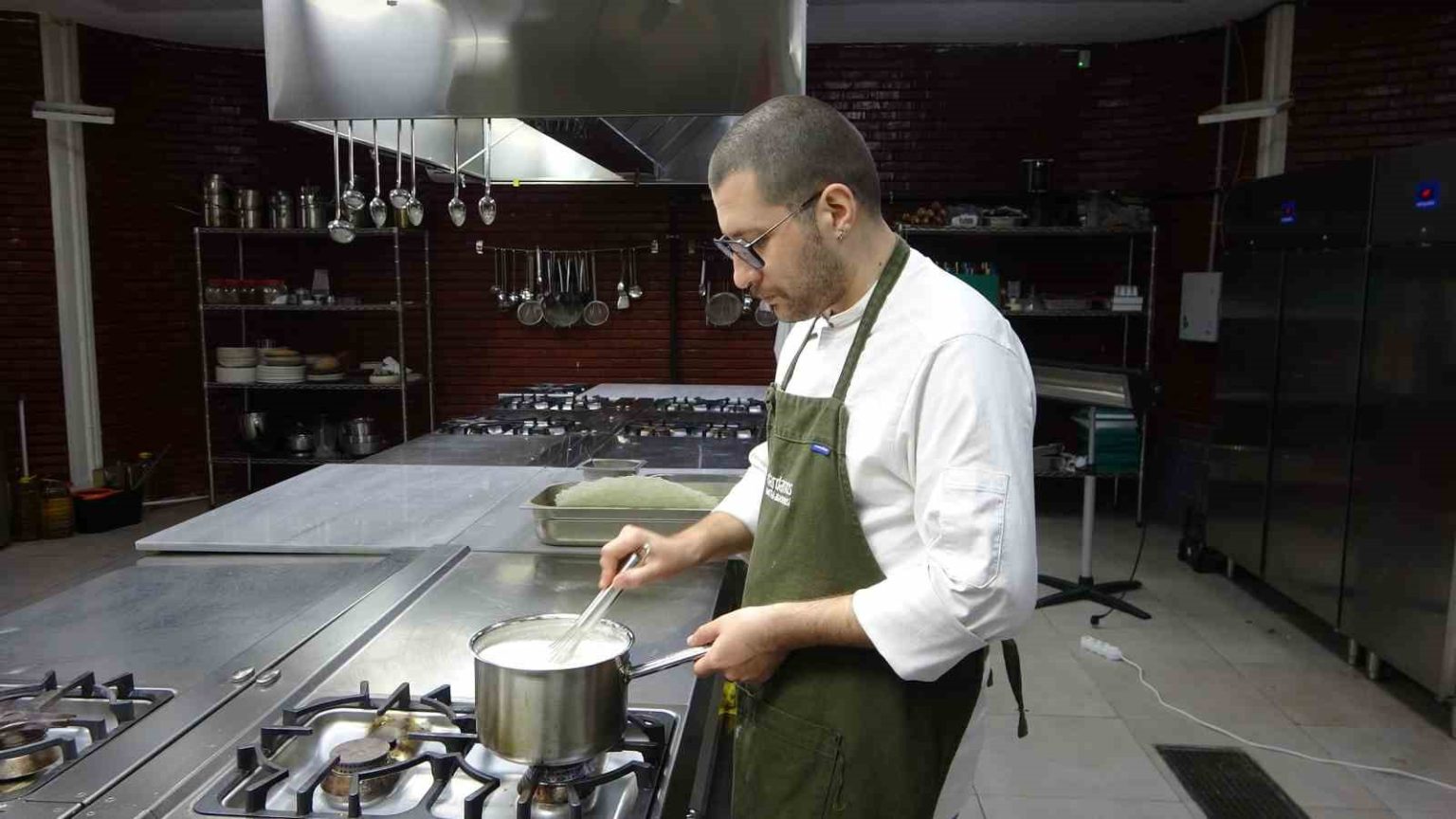 Güllaç tatlısı yapımının püf noktalarını anlatan Emre Usta, “Püf noktası aslında kaynattığımız sütün aşırı kaynar olmaması. Yufkayı eklediğimiz zamanda çünkü aşırı kaynar olursa yufkayı eritecektir. O yüzden hamur gibi bir kıvam elde edeceğiz. Bu da istemediğimiz bir şey. Aynı zamanda çok da soğuk olursa süt bu sefer de yufkalar süt içine çekmeyeceği için sert bir yapıda kalacaktır. Bizim tabirimizde eli yakmayacak derecede bir sıcaklıkta olması gerekiyor sütün. O da takriben 40-50 derece civarlarında. Orjinali en basitinde dediğim gibi yufkanın sadece süt ile ıslatılmış bir versiyonu. Kişi kendi zevkine göre benim kanaatimce şekillendirebilir ürününü. Elinde fındık vardır, fındık koyabilir. Ceviz vardır, ceviz koyabilir. Nar vardır, nar koyabilir. Tamamen kendi zevkinize kalmış bir şey. Bugün de mesela ben ekstra olarak vanilya ekleyeceğim. Çünkü güzel gideceğini düşünüyorum. Biraz da gastronomide açılmakta özgürsünüz diyebilirim. Bu arada yine kuruyemişleri ekleyecekseniz bir gün içerisinde tüketmeniz gerekmekte. Çünkü kuru yemiş ne kadar çok kalırsa içerisinde sıvı bir ürün olduğu için bir nebze çekecektir kuru yemişler onu ve kararma olacaktır. Bu da istemediğimiz bir şey” ifadelerini kullandı.