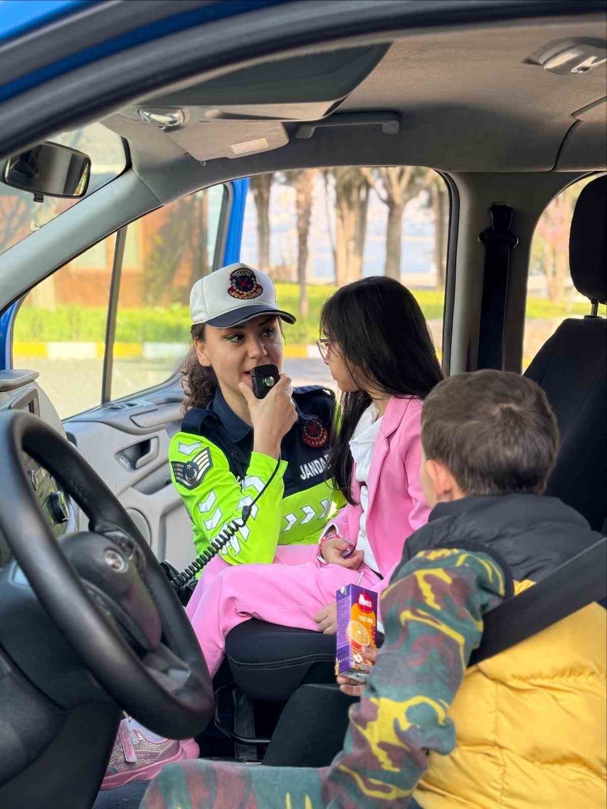 Jandarma ekipleri, farkındalık günü kapsamında kendilerini ziyaret eden öğrencilere teşekkür ederek, onları güzel hâtıralarla uğurladı.