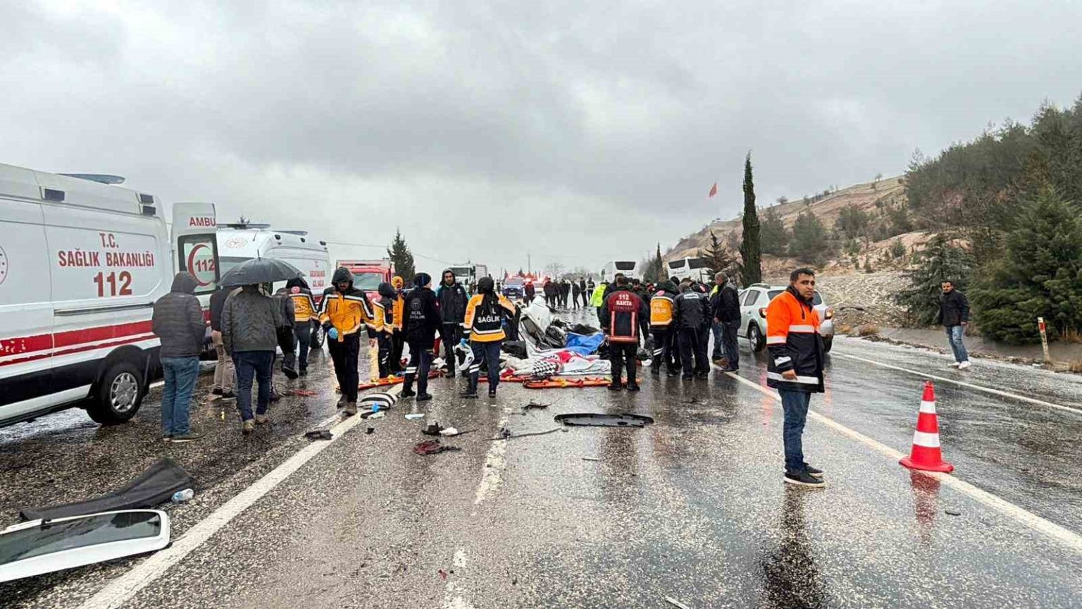 Adıyaman’da yolcu otobüsü ile otomobilin çarpışması sonucu meydana gelen feci kazada 3 kişi hayatını kaybetti, 1 kişi yaralandı.
